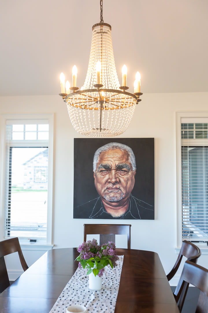 In the initial design, the house was much more open concept. More walls were included for the couple’s collection of about 60 pieces of art and sculpture by established and emerging local artists, such as Jamelie Hassan, Thelma Rosner, Bruce Flowers, Roger Ure, Angie Quick, Fanshawe visual arts students and Arts Project (now TAP Centre for the Arts) artists. “I wanted a lot of art,” says Suzanne. “The wall spaces are huge so they could take large pieces of art.” The white walls and black slate flooring act as a gallery to tie it together. Jim Telfer helped Suzanne with design details, including the slate floor. “It’s very dramatic and really works.”